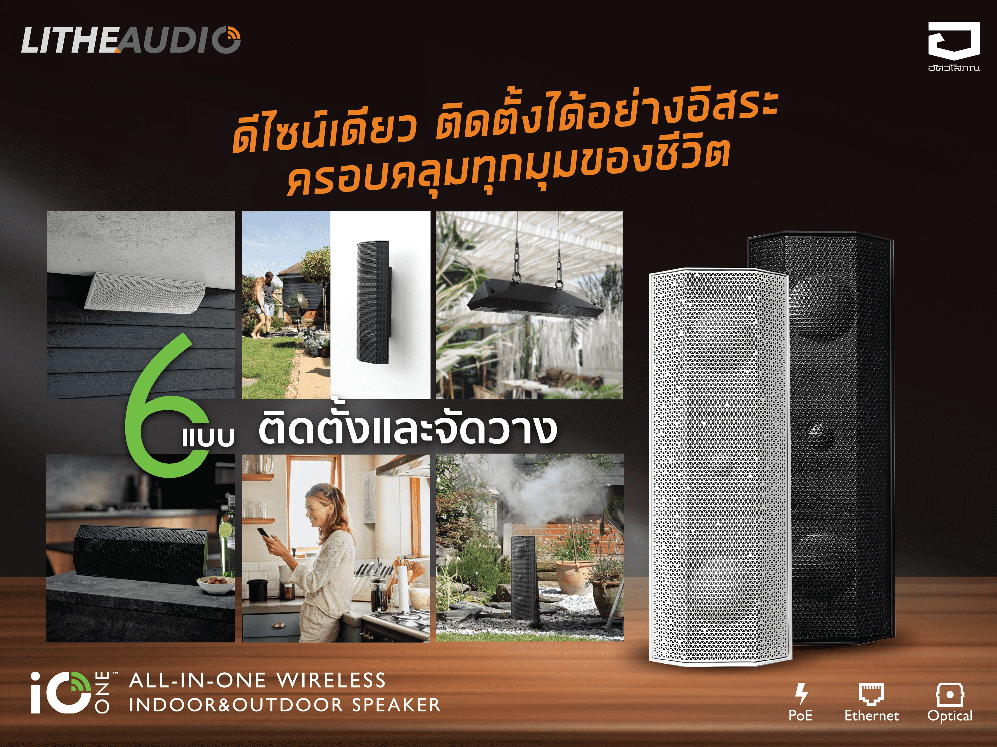ไม่ว่าคุณจะอยากติดผนัง วางบนเคาน์เตอร์ ห้อยแขวน หรือปักตั้งพื้น iO1 รองรับได้ถึง 6 รูปแบบการติดตั้ง ให้คุณเลือกได้ตามพื้นที่และสไตล์ของการใช้งาน เหมาะกับทั้งห้องนั่งเล่น ห้องครัว สวน ร้านอาหาร หรือแม้แต่ร้านค้าปลีก