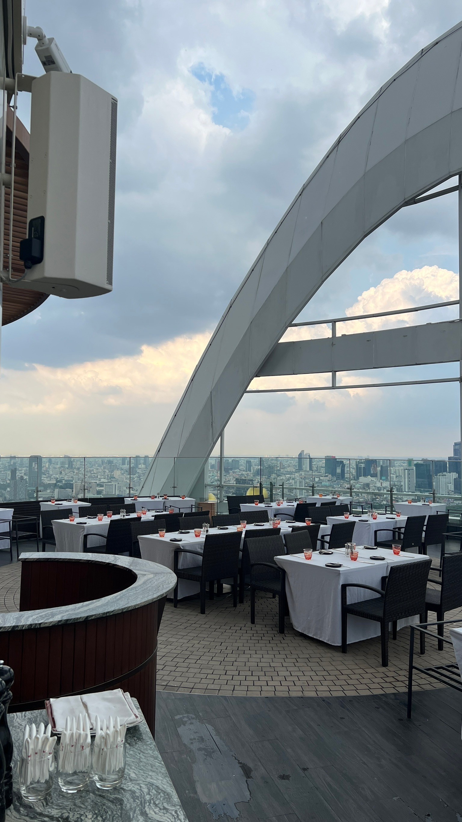 Red Sky รูฟท็อปบาร์สุดหรูบนชั้น 55 ของโรงแรม Centara Grand at CentralWorld เป็นอีกหนึ่งจุดหมายที่ไม่ควรพลาดสำหรับการดื่มด่ำกับบรรยากาศใจกลางกรุงเทพฯ ที่นี่จะได้สัมผัสวิว 360 องศาทั้งเมืองยามพระอาทิตย์ตกดินและแสงไฟระยิบระยับของกรุงเทพฯ ในยามค่ำคืน จุดเด่นของ Red Sky คือบาร์โค้งทันสมัยและมีค็อกเทลสูตรพิเศษที่ถูกออกแบบมาอย่างประณีต นอกจากนี้ยังมีเมนูอาหารยุโรปและซีฟู้ดสุดพรีเมียมที่เติมเต็มประสบการณ์การดินเนอร์อย่างสมบูรณ์แบบ พร้อมมุมถ่ายภาพสวยๆ ท่ามกลางแสงไฟ LED ที่สร้างบรรยากาศสุดโรแมนติก