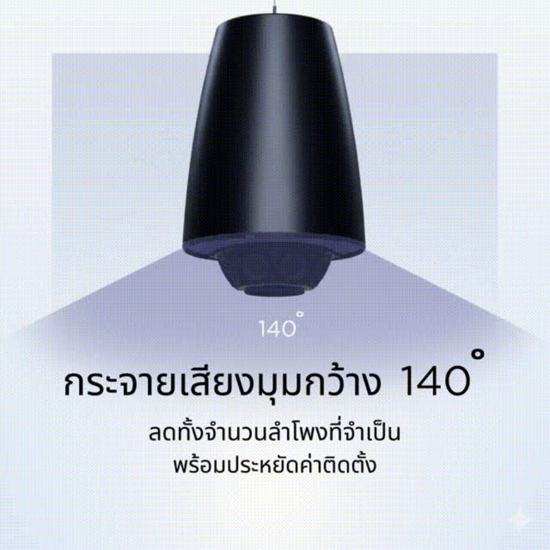 Wide-throw 140° coverage reduces speaker count and installation costs